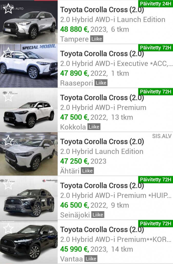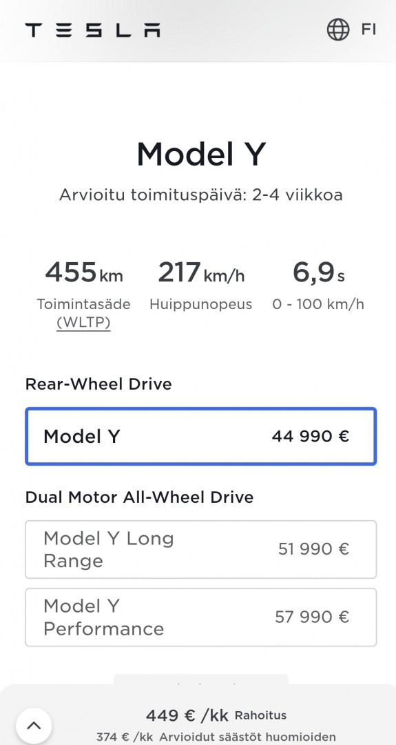 Tesla laski model Y hintoja. Alkaa olemaan mielenkiintoiset hinnat verrattuna Corollaan tai Qashqaihin.