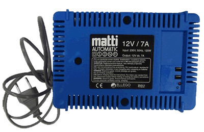 Matti 12v/7A laturin kyljessä lukee seuraavaa: