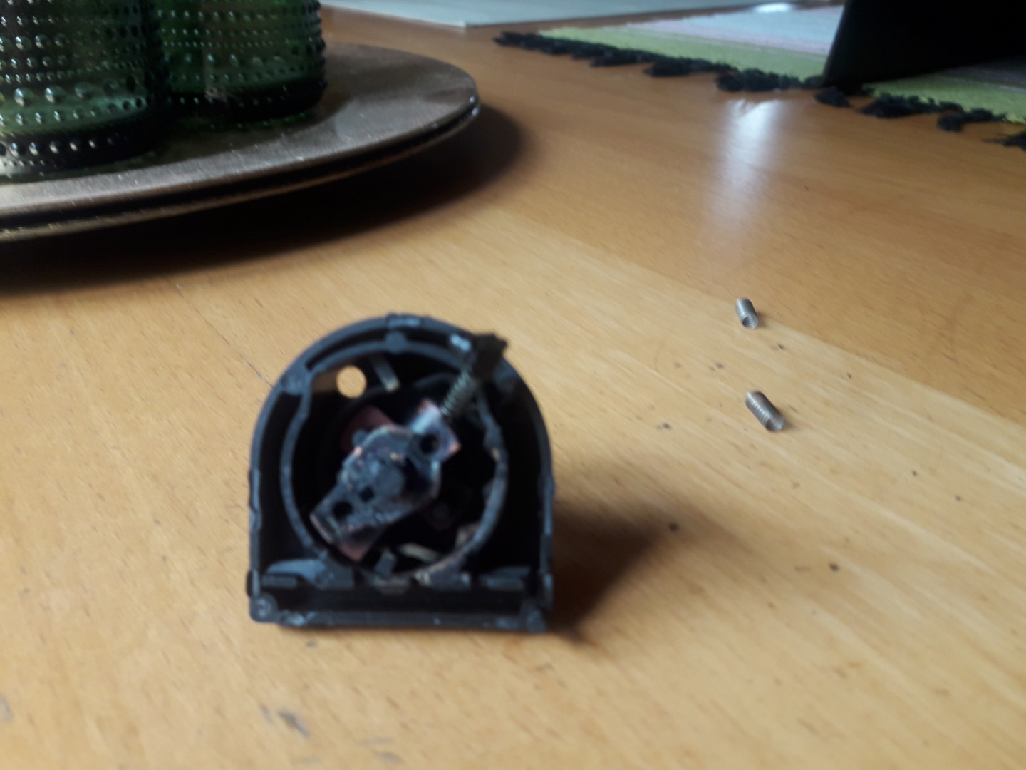 Siinähän se vastus on suoraan päällä yhdellä ruuvilla kiinni. Ehjät oli molemmat. Ei ollut muovit muotoa muuttaneet.