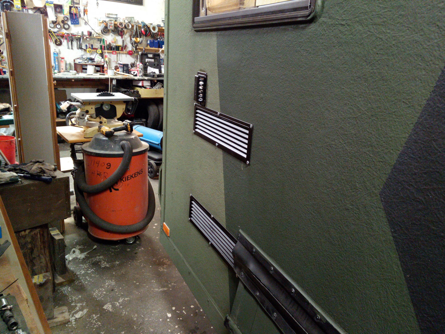 Kun sieltä nyt sitten näkyy eristeet ja vanerit niin liippasin lasikuitupakkelia niihin päälle, sitte voi varuilta laittaa vaikka maalin niin eipä pääse imeytymään vesi niin helposti rakenteisiin vaikka ritilät tiivistääkin  :) En tiiä oliko huono idea mutten muutakaan keksiny, Mersussa näkyy olleen reikä ihan sellaisenaan eikä se oo miksikään menny mutta ainahan voi ite kehitellä jotain paremmin..
