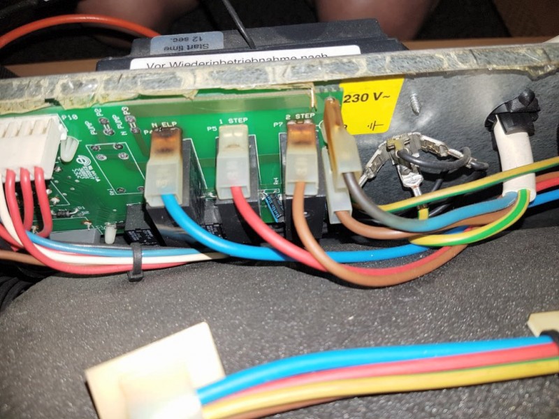 Kysymyksessä on 230 voltin jännite ja se johto ei tossa kuvassa näy kun menee vasemmalta sisään. Vika vaihtoehdot jo kerroinkin. Relekortin korjaus tottakai, mutta syy kannattaa selvittää. Mittaa vastusten navoista ja maan välillä ohmimittarilla niin saadaan aikaan jonkinlainen tieto vastusten kunnosta.