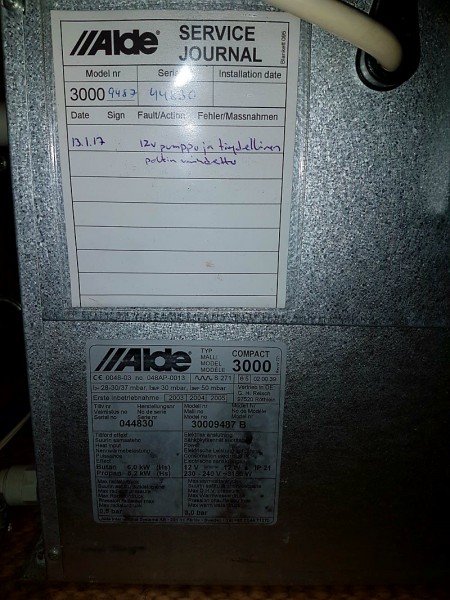 Koko kesän Alde toiminut niinkuin pitääkin. Sähkön päässä käytetty 2kw asetusta, mutta nyt viimeisimmällä reissulla kun leiriä tehtiin niin emäntä valitteli, että on kylmä. Laiton 3kw sähköpuolelta päälle ja lähdin käyttämään koiraa lenkillä. En päässyt kuin leirintäalueen portille kun soi jo puhelin ja tuli ilmoitus, että autossa haisee kärähtänyt sähkölaite.