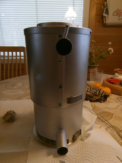 Olen laittanut pelkän pannun rungon pohjan päälle ja lakannut pohjan päältä näkyvän osan. Aiemmin lakkasin myös alapuolen, mutta luovuin siitä kun lakka ei kestänyt kuumuutta ja hilseili pois. Kuvasta nykyy lakattu osa.