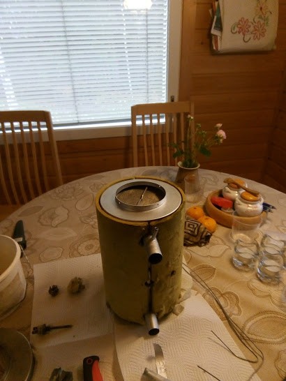 Tältä näyttää arina, suuttimet käytin irti ja puunasin paineilmalla, ei ollut verkkoja eikä sen kaltaisia.