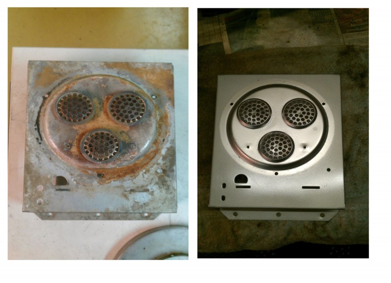8 tuntia 80 asteessa 5% sitruunahappoa ja sen jälkeen pesu, kuivaus ja maalaus. Aikas palajon oli semmosta ruoste hilsettä noissa tulipesän "kanavissa", lieneekös vika sitten siinä kun ei startannut kaikilla polttimilla.