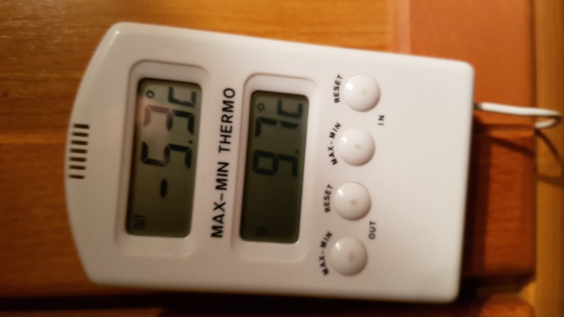 Pakkasta -5.3 ja vaunun sisällä  + 9.7.