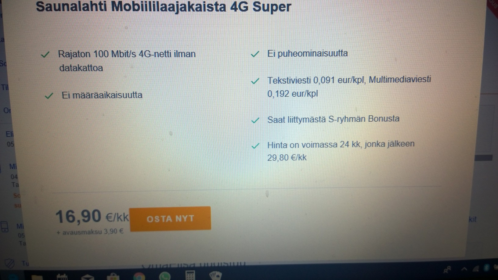telian tarjous oli puhelinliittymät 19,90 kpl ja netti 16,90. Aikamoinen hinnan nousu.