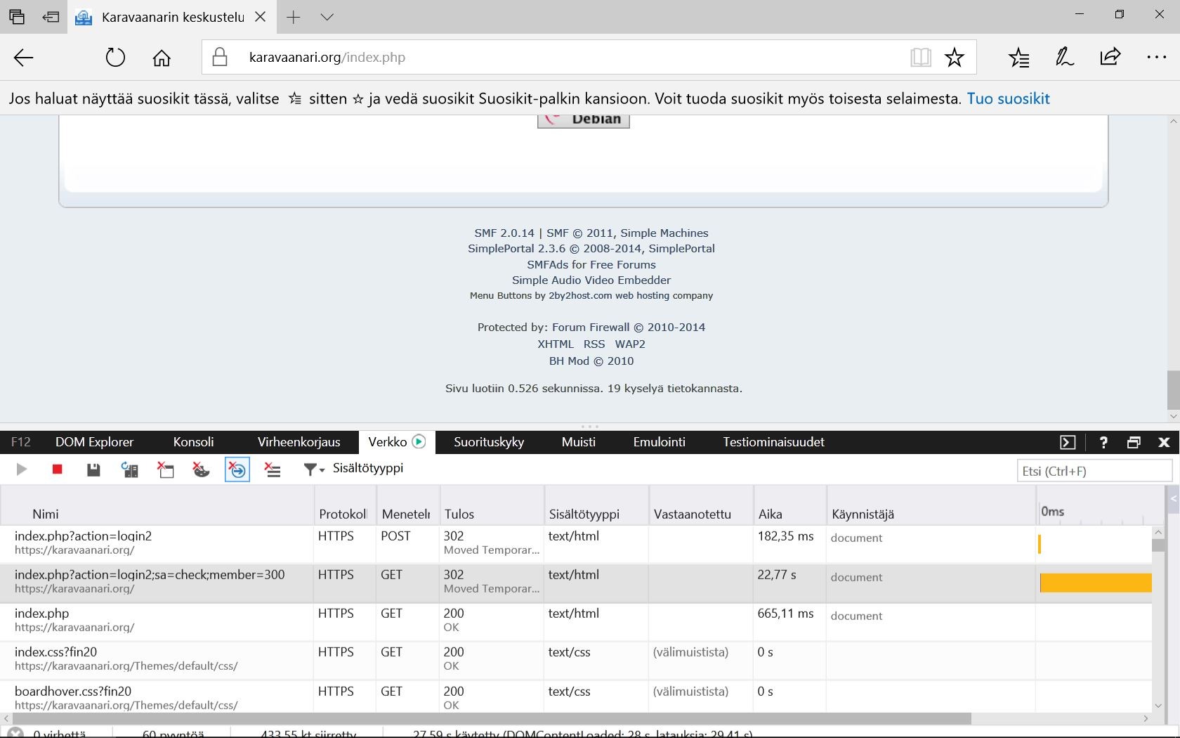 Edit: niin juu, tuo suosikin url on itselläni http://karavaanari.org/ Nopeutuisikohan tuo jos laittaisi sen suoraan https tai jopa suoraan unread? ???