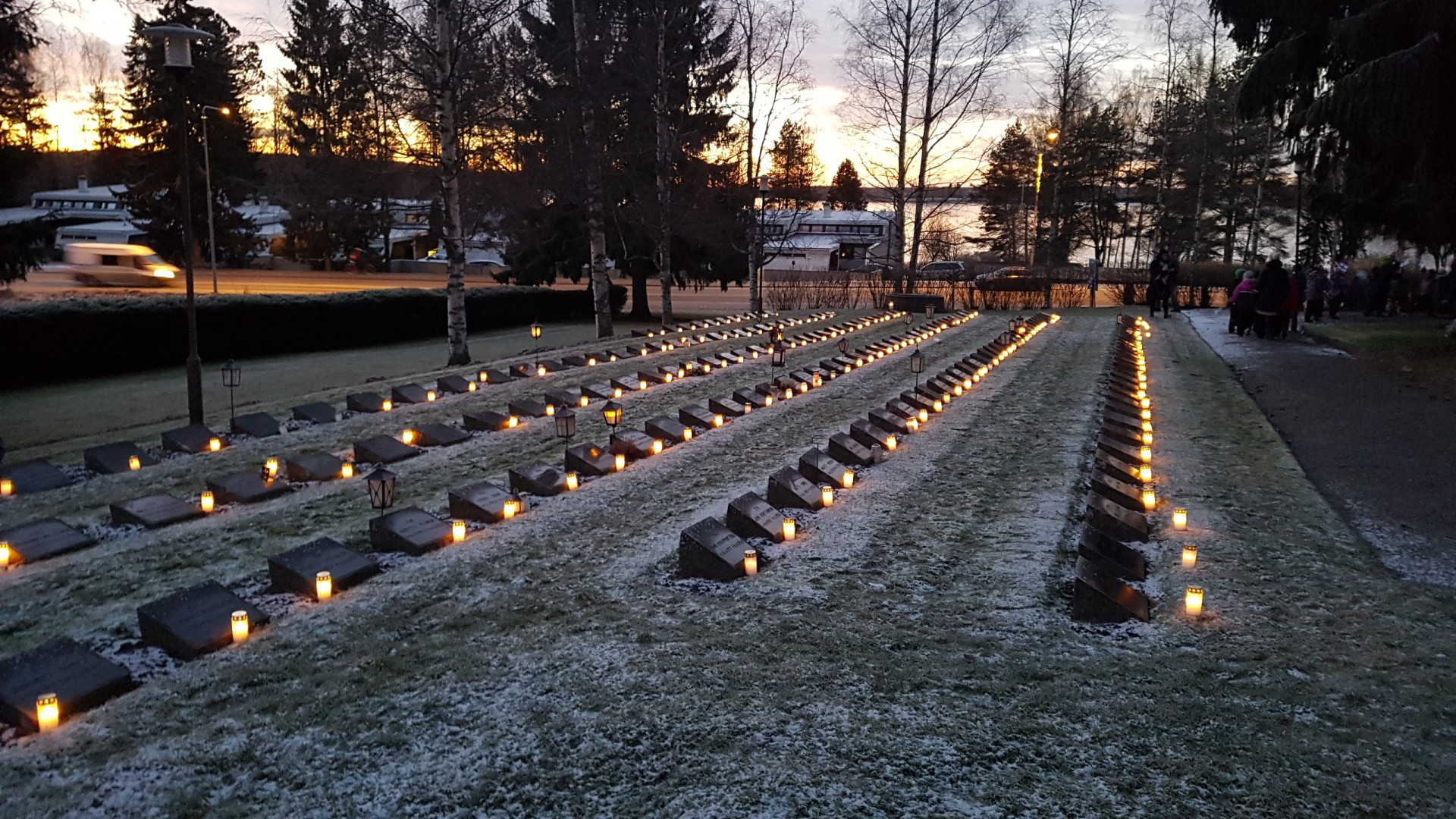 Juhlinta aloitettu. Aamulla sankarihautausmaall a