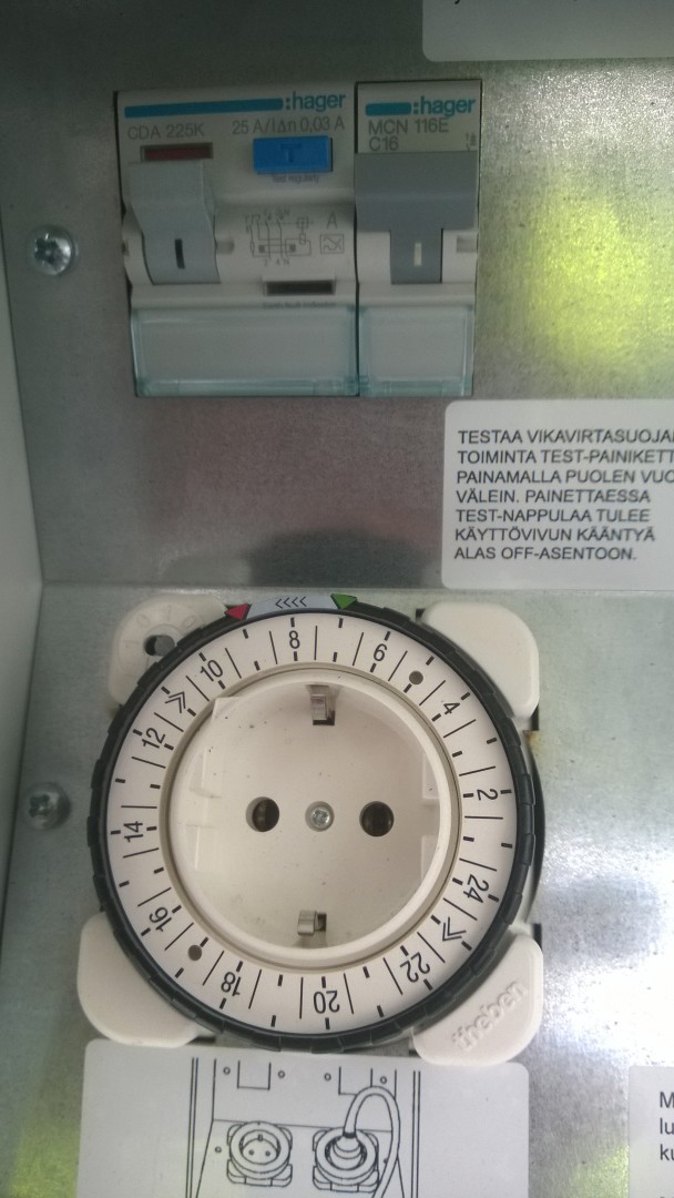 Työpaikan tolpassa tällainen, liekö 16A sulake.... Kytken moottorilämmittimen ja sisätilalämmittimen (550W + jotain 1500W), Defan johdolla joka on ilmeisesti 1,5mm2. Palaako autoni tällä yhdistelmällä?