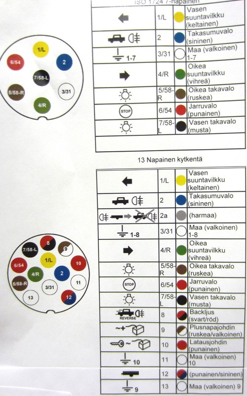 Sitten omakohtainen huomio, Soliferin S5+ vm 2003 on 7-napainen pistoke, mutta pistokkeeseen menee 13-napaisen johdot ja ne on valmiiksi vaunuun kytketty. Joten pistokkeen vaihdolla saa vaunun lataamaan.