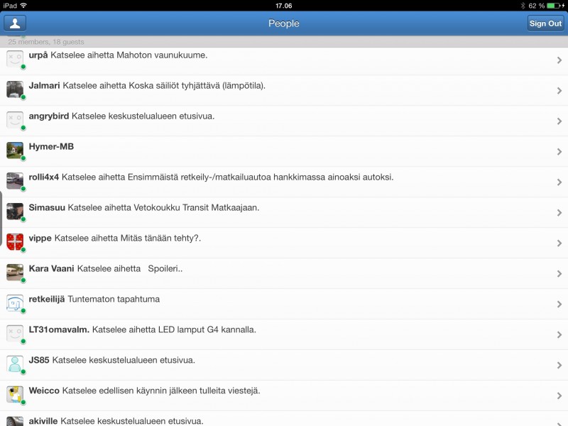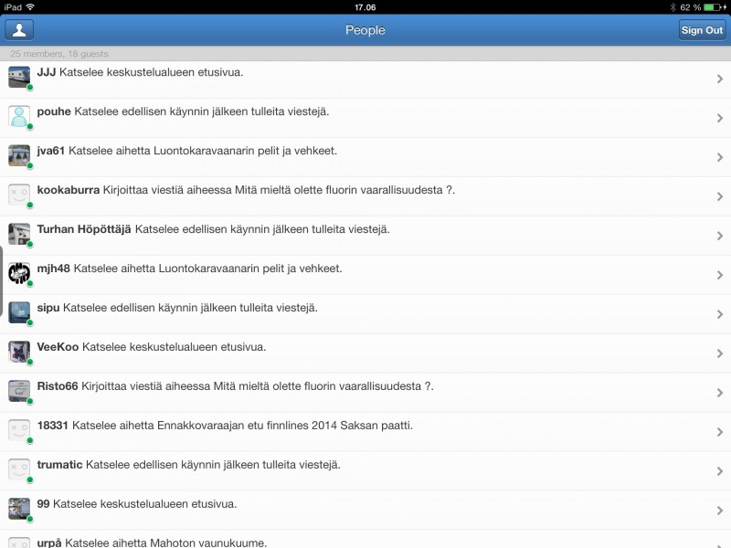 ![]() Toassiisa männä sujahti meikäläisen yksityisyys. ![]() ![]() mistä tälläset sivut löytyy Etusivulla oikeassa reunassa klikkaat kohtaa "paikalla olevat käyttäjät". mistä tälläset sivut löytyy Paitti sit modet tai muut tietyt henkilöt joiden kohdalla lukee "Ei mitään tai ei mitään mitä voisit nähdä" ![]() Noi tiedothan on tossa tyrkyllä olleet siitä asti varmaan kun tää foorumikin. Minä ainakin joskus uteliaisuutta käväsen kattomassa mitä kanssakulkijat puuhaa.. sieltä se löytyi