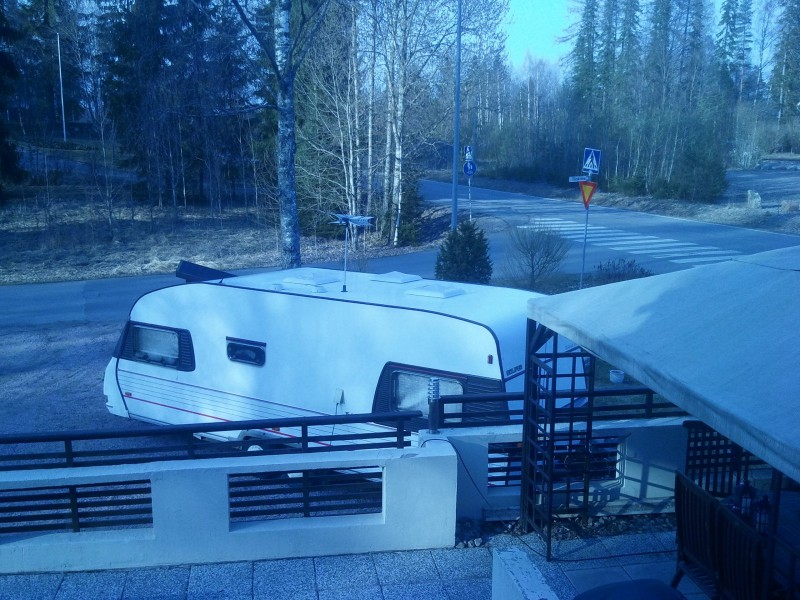 Tänään kiinnitin vaunuun jäsentarrat. Jääkaapin tuuletusaukot avattu ja tsekattu. Ei pölyä, ruostetta kyllä. Veskin loput kalut poistettu, paitsi pönttö. Reiät paklattu, pohjamaalia vailla. Vaimo ompelee uusia verhoja kuin viimeistä päivää. Toiveissa olisi neitsytmatka viikon päästä. Saapi nähdä miten käyp.