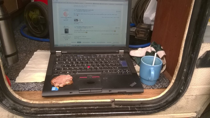 Syömässä myös. Aivan oikea ruokatunti tähän aikaan. Piti tulla yötuuriin katsomaan kuinka betoni menee muottiin.