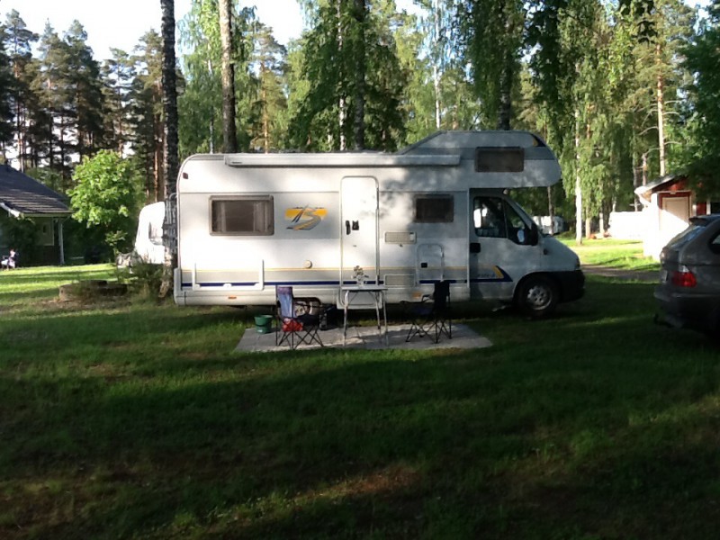 Nyt, kun auto on "uusi", niin halusin ensi yön kämppärin olevan tuttu. Ajettiin peräkanaa Lopen Laakasaloon. Pasi Byssellä, tietty. Täällä on tuttuja karavaanareita, jotka osaa neuvoa meitä, jos ei osata käyttää Trumaticia. Tai jos Bysse ei lämpiä, löytyy apuja...