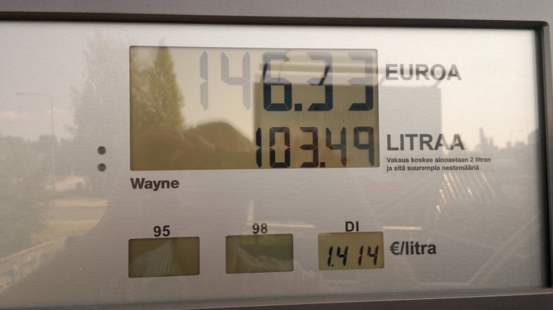 Ainakin halpa litrahinta. Matkalla halvin lukema oli 1.399 mutta eilen sitten tankattiin 1.469 tästä Power Parkin läheltä.