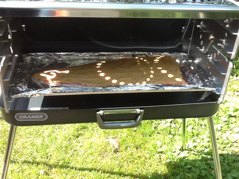 Pesty perunat rantavedessä ja aloitettu Cramerin testaaminen lohen paistajana.