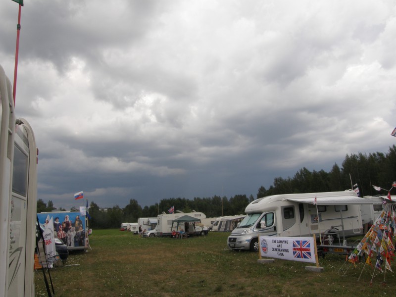 Naapuri ja rallykollega suorastaan tyrkytti uusia kiilojaan markiisin ankkurointiin. Ankkurointi suoritettu. Oli koirakoukut, joita ei saanut oikein kunnolla kovaan maahan. Nyt odotetaan, mitä seuraa?