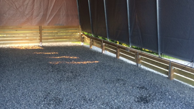 Ostettu 76 metriä kestopuuta joista lähemmäs 60 metriä mittailtu, sahailtu ja lopulta ruuvailtu teltan reunoille ja perälle... 4.5 tuntia sai tuhlattua omaa "laatuaikaa". Joskohan tuon täysin valmiiksi saisi tämän viikon aikana... ::)