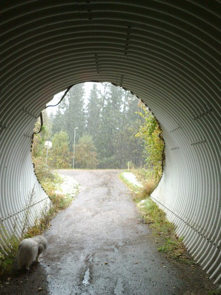 Kello 06:50 paikallista aikaa läksin koirien kanssa lenkille: Viimme viikon maanantai aamuna samaan aikaan nousi aurinko ja tänään siitä ei ollut tietoakaan. Mutta tuli se sieltä esiin noin 07:05.