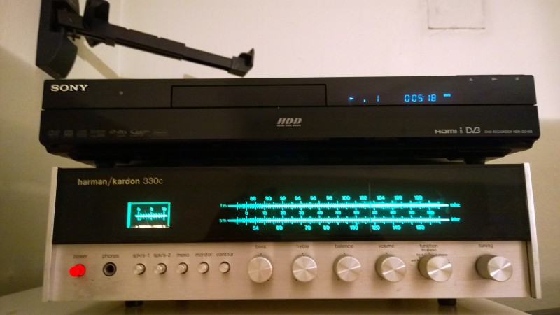 Tuossa on 1974 vuoden loistavaääninen hk 330c ja sisäisellä digiboksilla oleva tallentava dvs jossa myös kiintolevy.