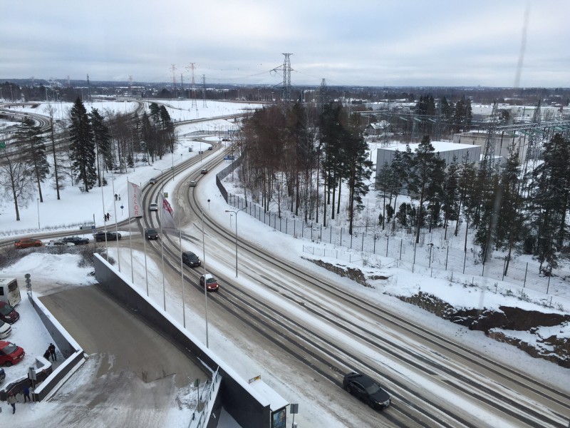 On sitä lunta jo täällä etelässäkin, kuudennesta kerroksesta tällaiset näkymät.