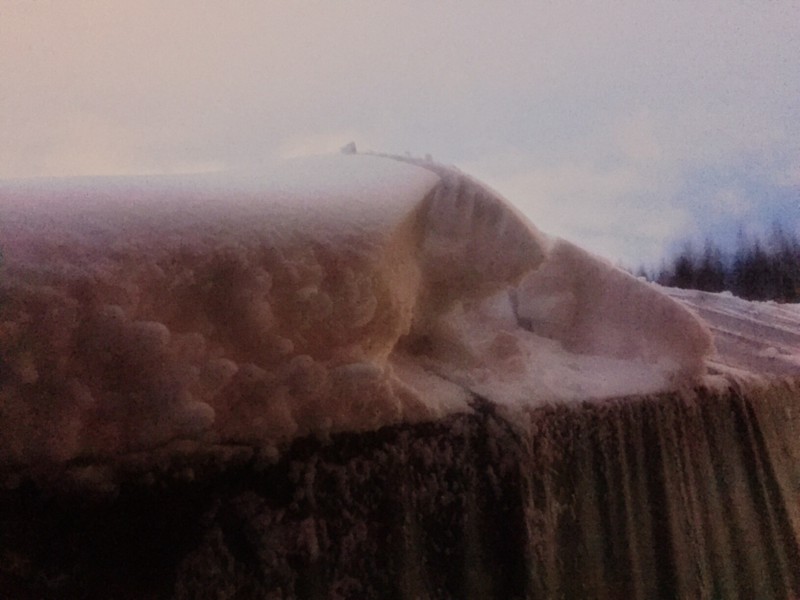 Se = muuten hiukka kettumaisen lujaan paakkuuntunut se katolta alas nakattu lumi  >:(