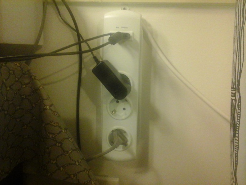 Nyt saan riittävästi ladattua kahta kännykkää ja kahta tablettia, ja käden ulottuvilla. Nuo schukot ovat telkkaria ja sen digiboksia varten.