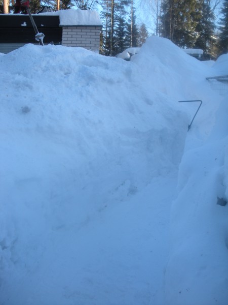 Samaa hommaa..piti pikkaisen käydä vajuttaa katon kuormaa.Kevyt puuterilumi ihan jees...kohtapuolinh an se taas nii lämpenee ,jotta raskaaksi saattaa loskan siirtona käyvä.. Ahkeruus ON ilomme ![]() Tätä Ei helvatti,missä te oikein asutte? Järjettömän paljon lunta! Yäk konsanaan!
