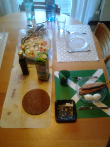 Eilisen illallinen, päivällä oli kaali,purjo ja selleri sosesoppa