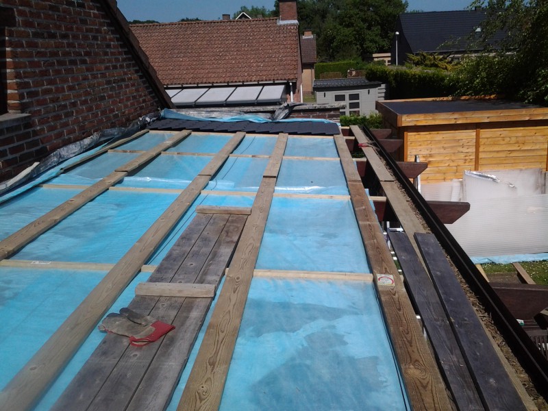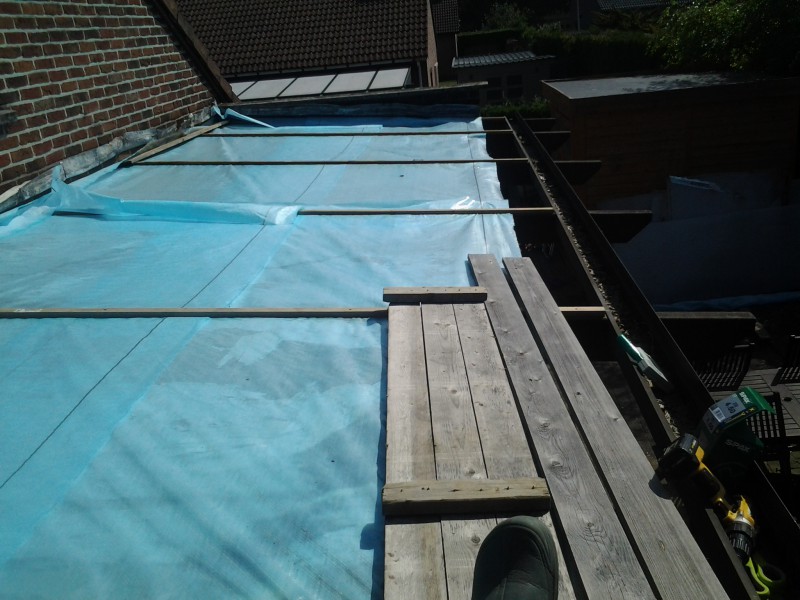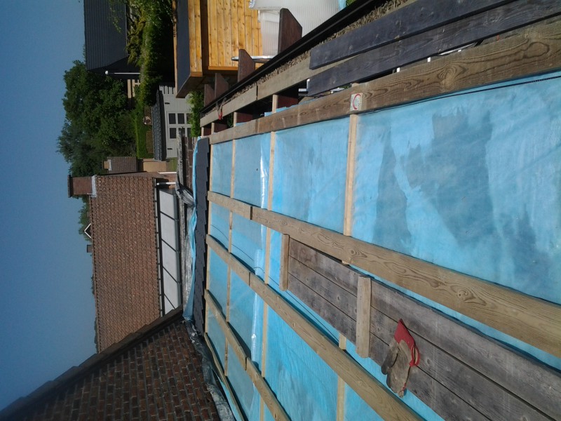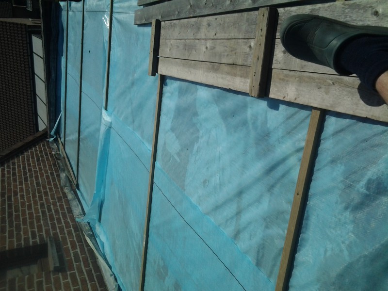 Eilen otin vanhan katteen pois terassilta. Tänään sitten laitoin aluskatteen paikalleen ja josko vielä iltapäivällä laittaisi ruodelaudat peltikatetta varten niin saisi huommena pellit paikalleen ja sitten voikin tulla povattu ukkonen lauantaita vasten yöllä.