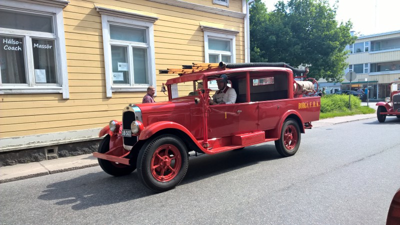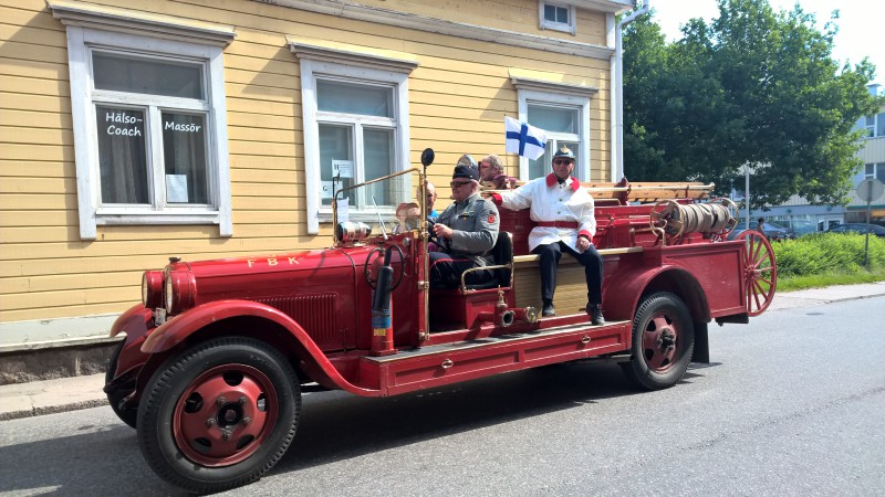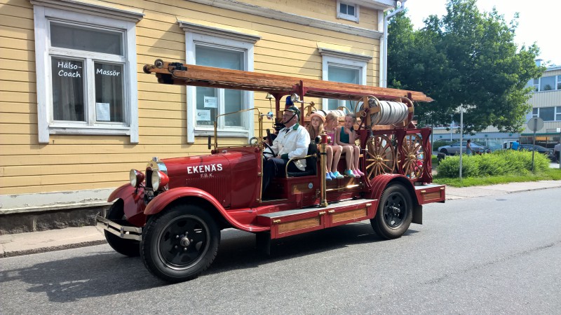 Tammisaaressa oli torilla paljon kivaa. Vanhoja paloautojakin ajeli paraatissa.
