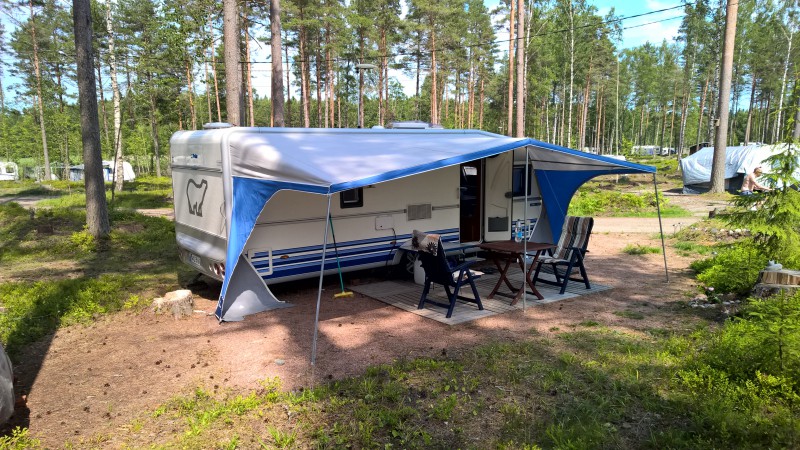 No eilen katos pystyyn, perjantaina pesaisin vaunun. Tänä aamuna otin koukun irti autosta, ettei vaunu tartu vahingossa koukkuun  ::)