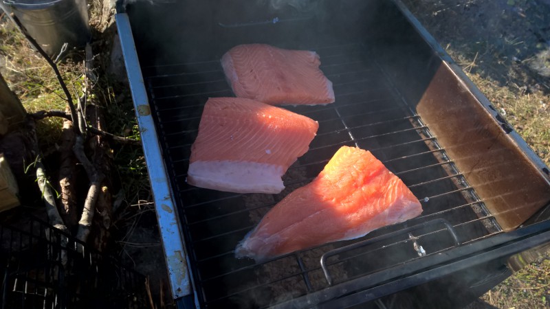 Oikein kaunis ilma on. Merituuli pyyhkii savut pois läheltä.