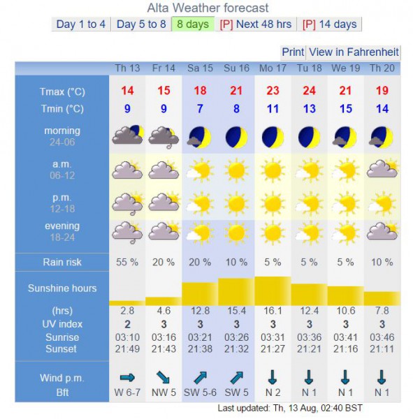 Palattu pohjoisesta. Siellä oli loistosäät. Ennuste piti paikkansa.
