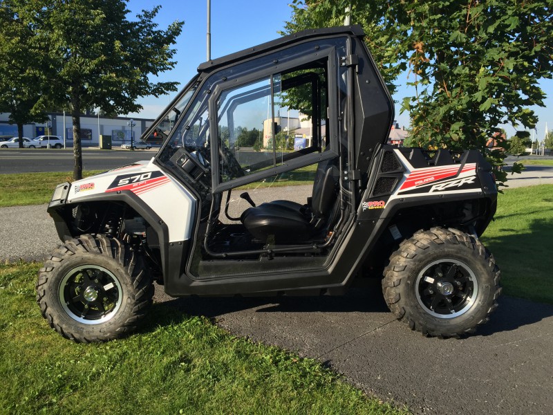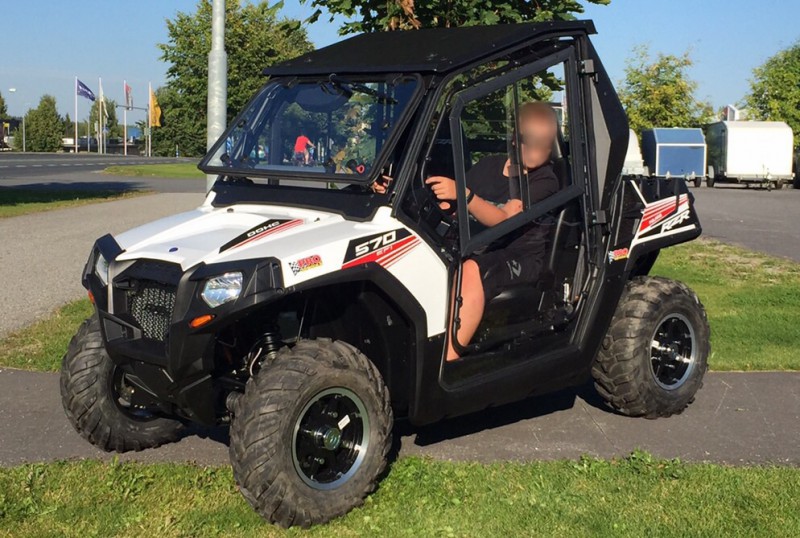 Nälka kasvaa syödessä, tässä se minkä isä osti ja huomenna saa, neljän vuoden päästä sitten mönkijä siirtyy pojalleni kun täyttää 15 vuotta. Hieno peli. En huomannu onks tommosissa turvavyöt? On turvavyöt, traktorimönkijässä oltava, olipa perinteinen mönkijä tai sitten tuollainen rinnakkain istuttava.