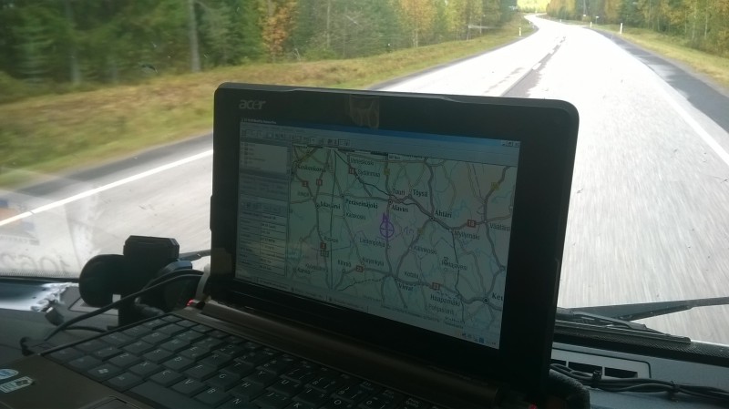 Täällä nautitaan ekaa kertaa tällä autolla hanttimiehen roolista  ;D no kohta se hymy hyytyy, kun näkee minne toi kuljettaja on ajamassa  :o