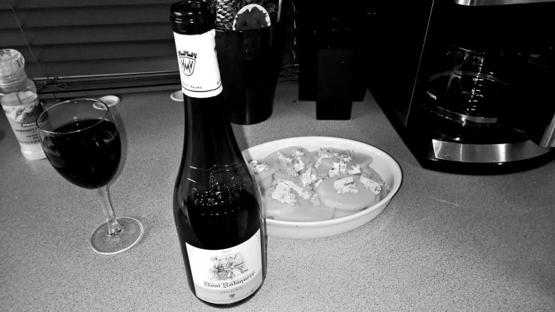 Hyvin menee seurustelu juomanakin. Nyt kuitenkin aurajuusto valkosipuliperunoil la ja naudan sisäfilepihvillä.