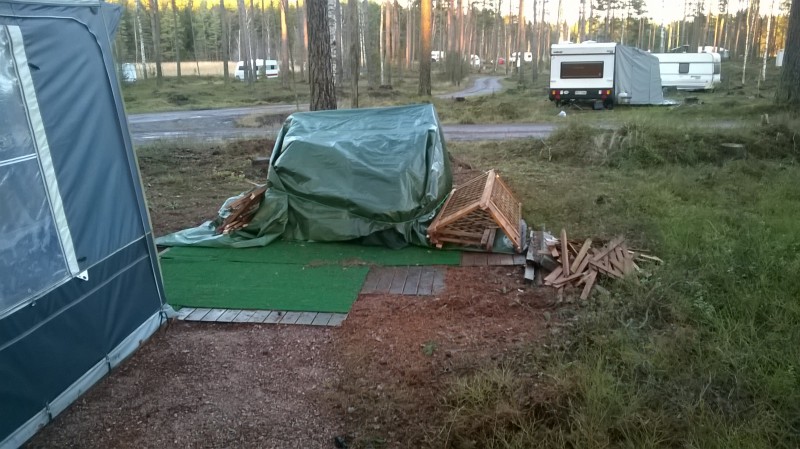 Käyty Kopparössa laittamassa myrskyn kaatama krillikatos pinoon ja laitettu talvituet telttaan.