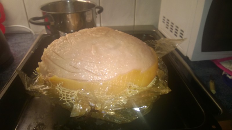 Laitettu kinkku uuniin  Thumb kyllä kannatti jättää kinkun osto viime tinkaan, kun nyt oli jo kaikki kinkut puoleen hintaan  ;D