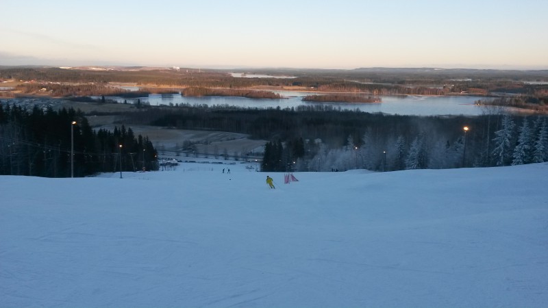 Käväsin pikkukirveellä testaamassa jään paksuutta, 10cm. oli havaittu paksuus jo, kyllä se siitä kun pakkastakin näkyy olevan -8.0°. Pikkujärvet vahvistuu kovaa kyytiä, mutta kova tuuli estää isommat selät jäätymästä, ja niiden reunamilla pitää olla tarkkana. Miten mahtaa Tehinselän alueella olla vielä jäätä, keskiviikoksi ennustettu -20c, joten jääpeitteeseen edellytyksiä on. En tiedä, missä olet, mutta Tehihän jäätyy viimeisenä. Päijänteen selät oli vielä päivännäöllä yleisesti auki. Tuossa vähän etelämpänä käytiin tänään, oli lahti jäätymässä ja komeasti sulan reunassa jäämurska piti meteliä, kun oli ihan kunnon aallotkin. Jäätyneen alueen rannoillakin oli vielä sulia. Hyvä kun ei ole lunta. Jäätyy nopeasti ja tasaisemmin. Viikon kun on kunnon pakkasia niin sitten uskaltaa, kun tietää mihin menee. Hitto kun ei ole vene vesillä ja Tehi on niin kaukana, että pitäisi viedä trailerilla. Kesäunelmiahan nämä. Olisi vaan hieno suora yhdistää koko perheen harrastukset, veneily, retkeily ja ruuanlaittelu. Kai niitä harjuksia on muuallakin, mutta Tehissä ainakin. Ruokakalana pidän ahventa ja harria vielä parempana kuin taimenta. 60cm mittataimen on sellainen kettu, että pitää olla onnea ja hyvät vehkeet, että saa veneeseen asti. En minä tykänny tästä uusimmasta 007 leffasta.