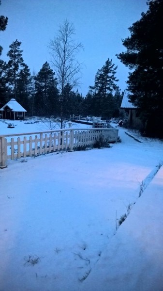 Lunt satta! Lumi o sit kaunist! Luanto tule kaunim valkkoseks ja miäli piristy, ku ei ol enä nimpal pimmiä. Mää tei vaimol ja itellen kuuma rommitoti ja mee istutti ikkuna äären kattoma hiutaleitte leijumist maaha. Tosi kaunist.