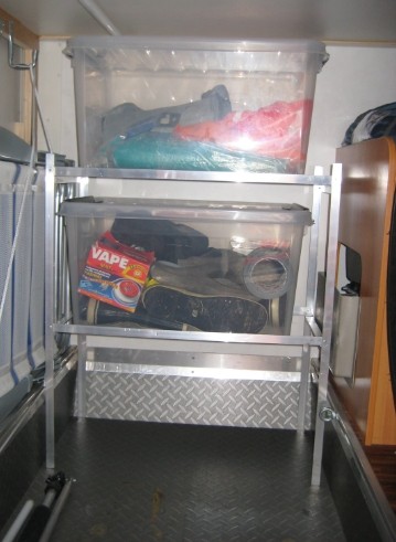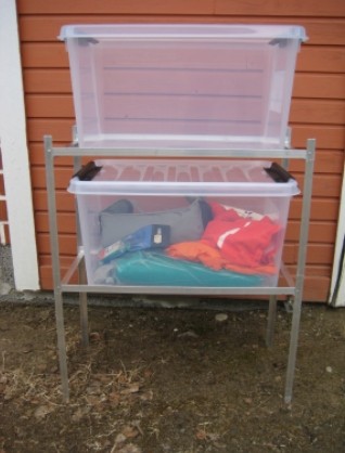 Kun tämä on "Mitäs tänään tehty?", niin sain siirrettyä nämä kuvat koneelle. Tuollaisen telineen värkkäsin takatallin laatikoille. Ei tarvitse ylempiä laatikoita nostaa ulos kun haluaa ottaa jotain alemmista laatikoista.