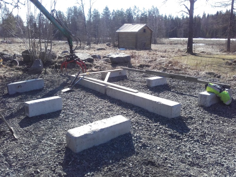 Tein ison suorakulman että saan ne suunnilleen paikoilleen yksin.. Melko hierominen saada nuo korkoon vaikka onkin tuo kuormaaja..