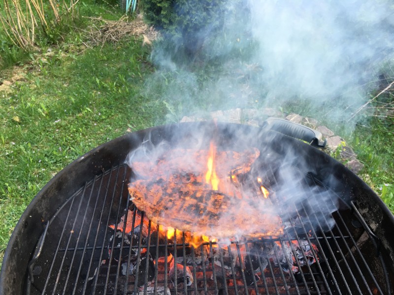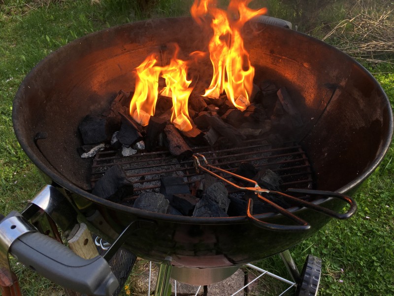 Lähempä nasauttaa kaasurillin tulille ja kyytiin nyt makkaraa.
