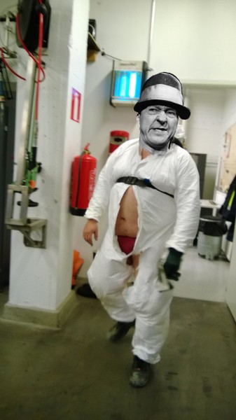 Työkaveri ei ole mikään sexy näky Tyvek päällä