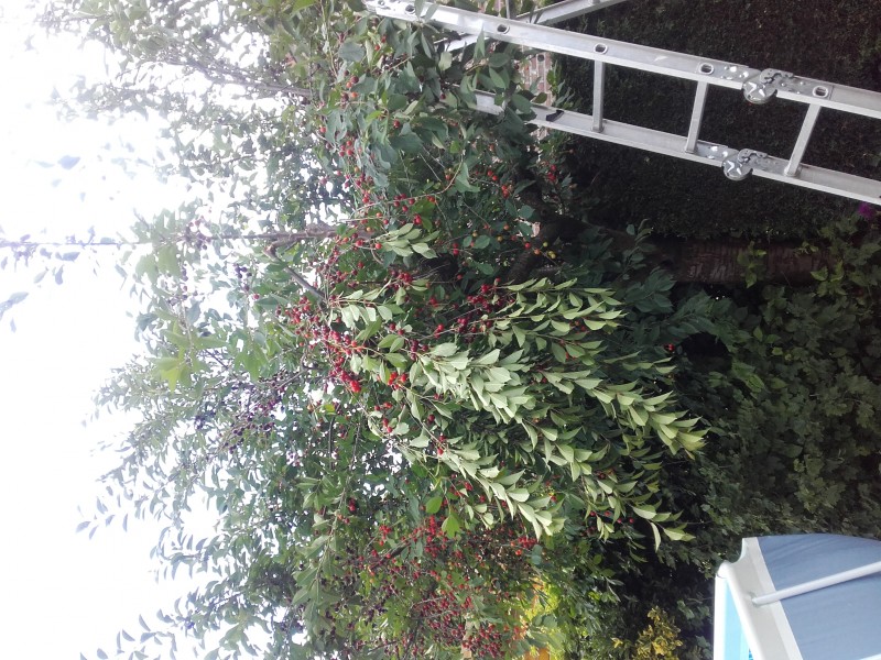 Vielä pitäs saada ennen reissuun lähtöä kirsikkapuu tyhjäksi, no onhan tässä vielä yksi aamupäivä aikaa. Vasta kolmekymmentä litraa poimittu.