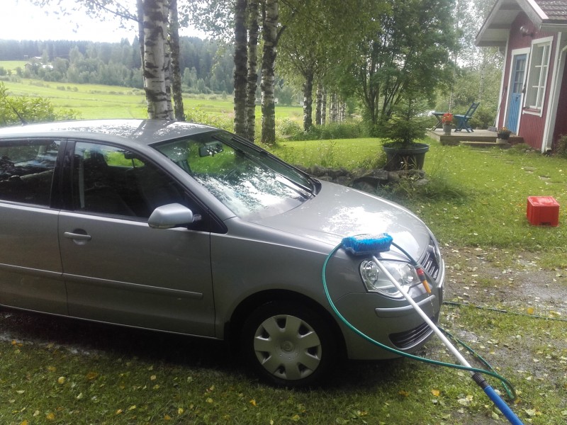 biilin ja matkamökin pesin kun on mukavampi lähteä isämaahan huommenissa tutustumaan kun on puhfas mökki.