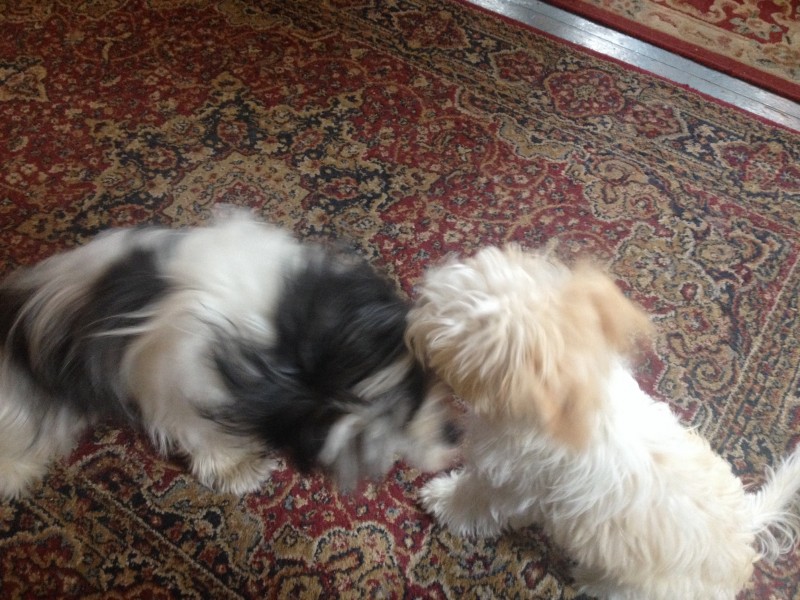 Tässä meidän taistelupari,tummempi n.9-v isä opettaa poikaansa tavoille.Poika nyt 5 kk ikäinen.