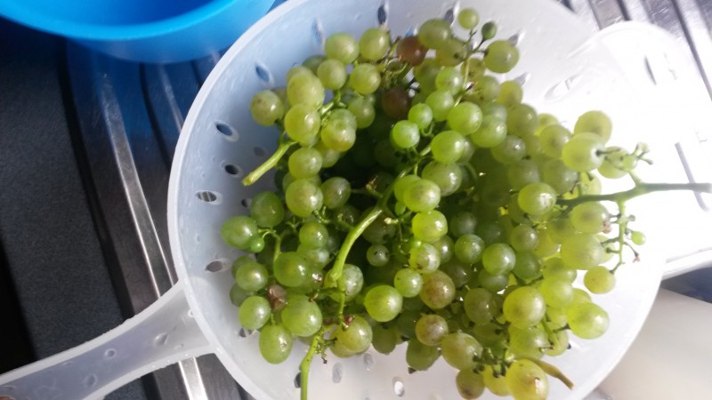 Keräsin puolet viinisadosta. Kyllä passaa taas ensi kesänä nostaa lasia pikkurilli sievästi.  ;)